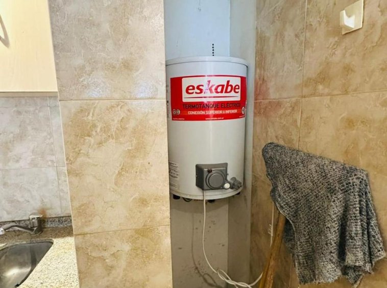 Sector cocina equipado con Termotanque, Heladera, Cocina y Mesa con 4 sillas