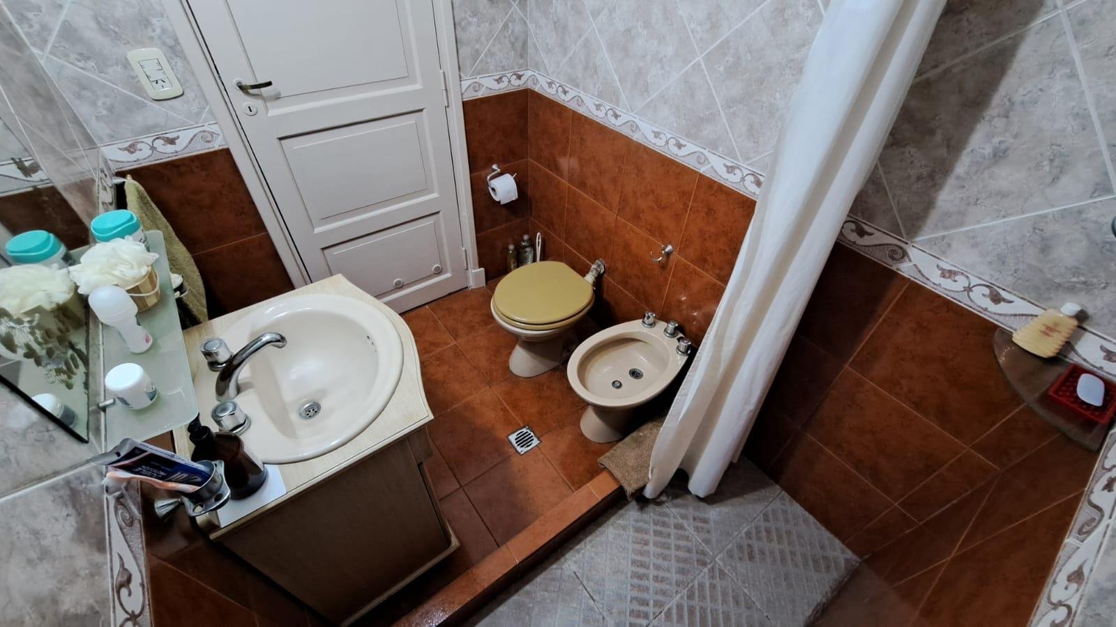 Baño completo con pediluvio, revestido en cerámicos