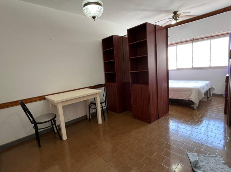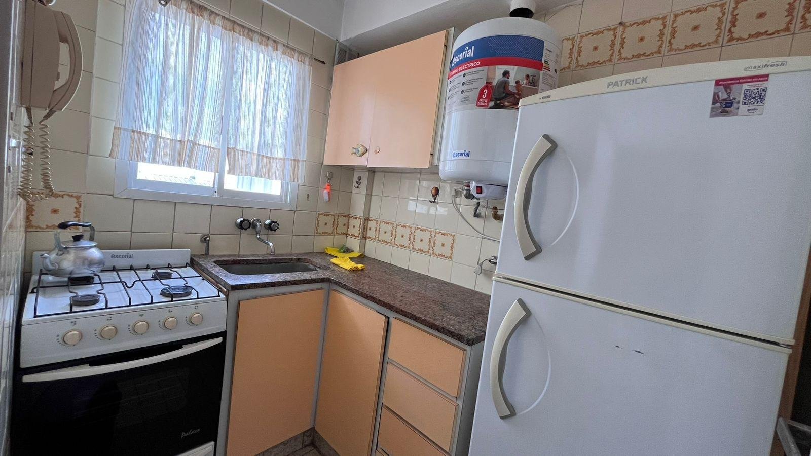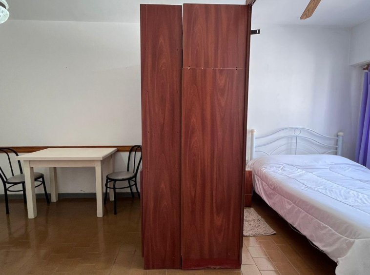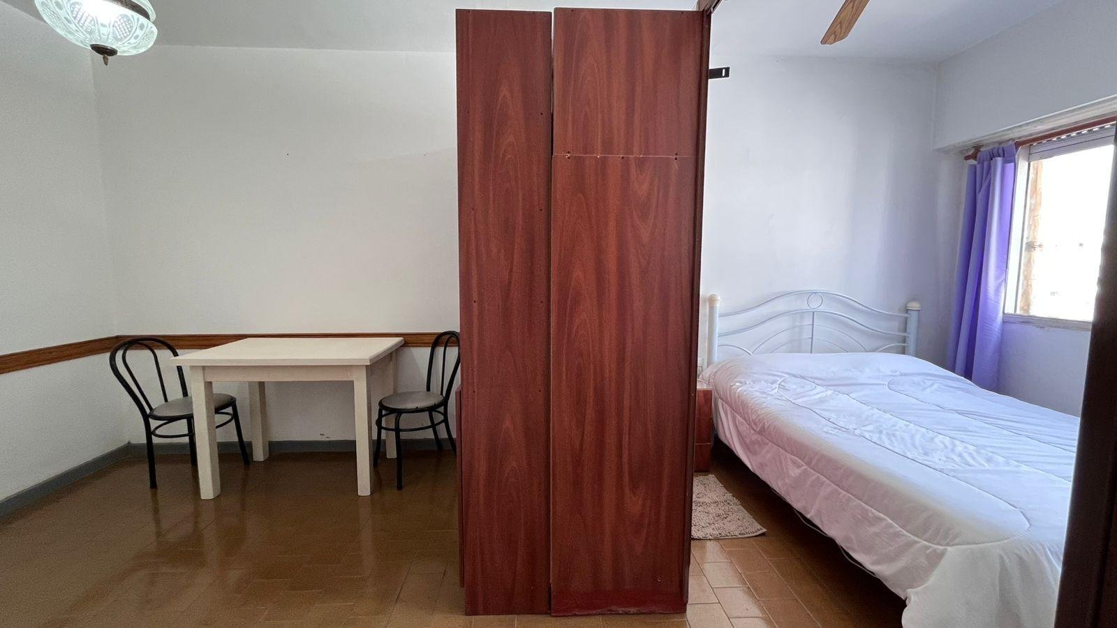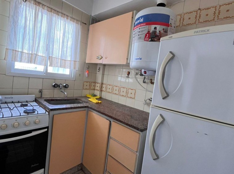 Ambiente dividido luminoso, con cocina separada y equipada con heladera con freezer, termo eléctrico.