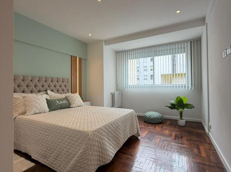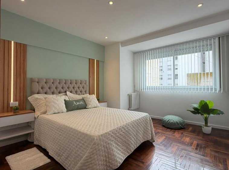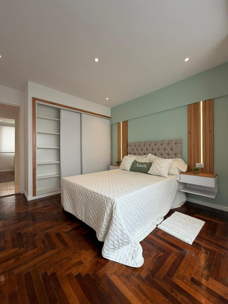 Dormitorio secundario con piso de parquet y placard empotrado luminoso