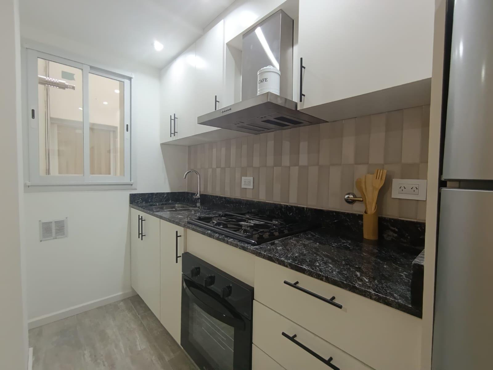 AMPLIA COCINA SEMI INTEGRADA, EQUIPADA CON MUEBLES A MEDIDA, VENTILACION NATURAL Y SECTOR LAVADERO