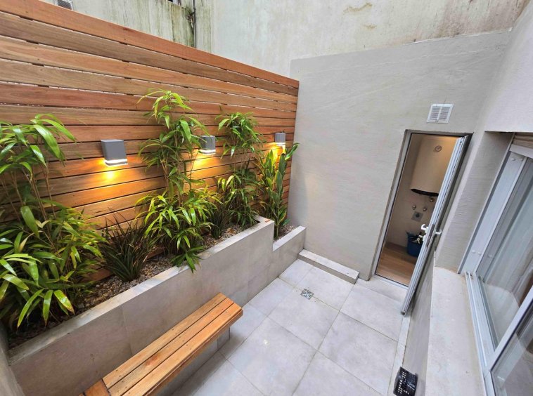 COCINA SEPARADA Y EQUIPADA, CON ESPACIO PARA LAVARROPAS. SALIDA AL PATIO CON DECORACION, DETALLES EN MADERA.