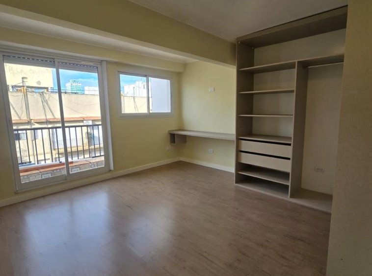 Habitación con placard, espacio de escritorio y salida al balcón corrido.