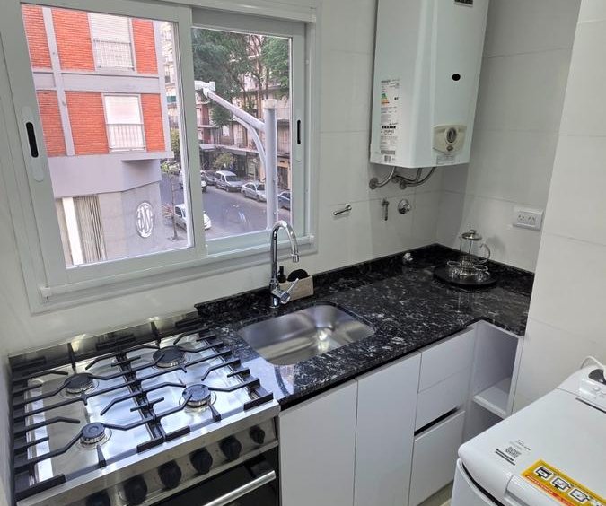 Cuenta con living-comedor a la calle. Asi como su cocina, que se encuentra separada y equipada con electrodomésticos a estrenar. Con Lavarropas,