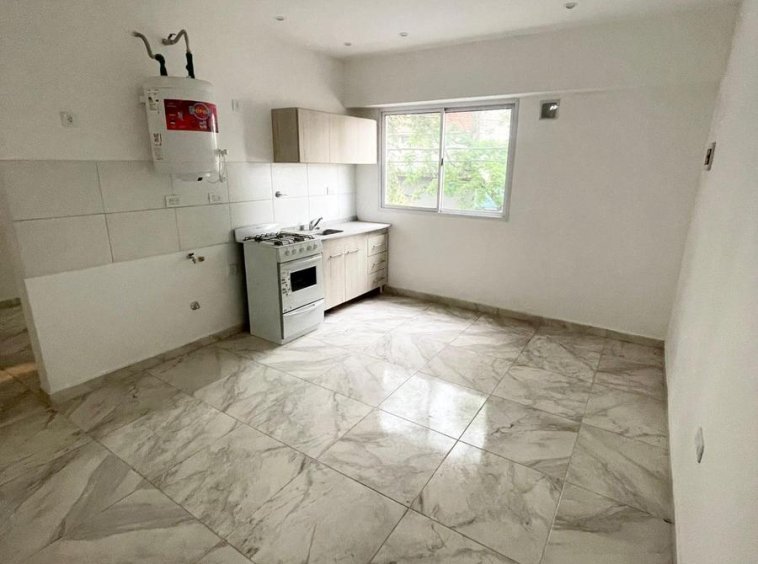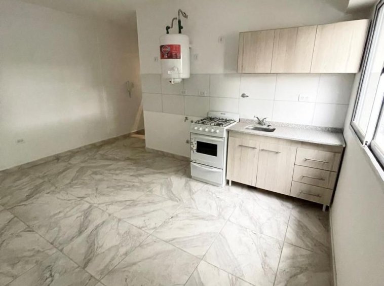 Con cocina y calefón a gas. Cocina integrada al living comedor separado por barra. Muy luminoso.