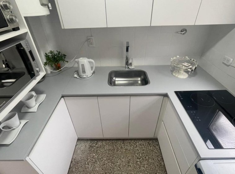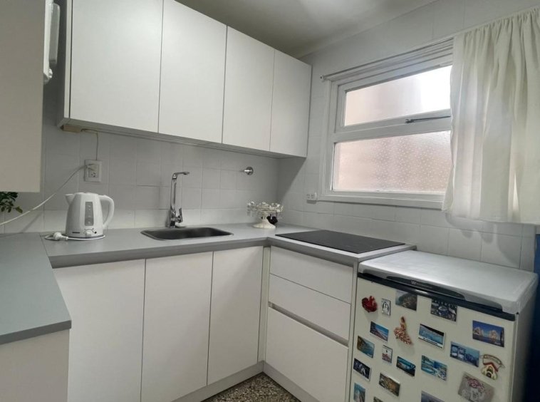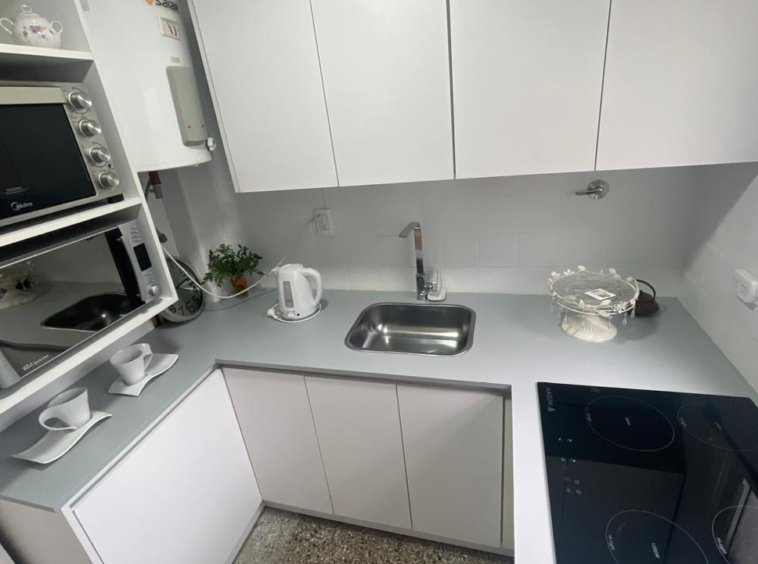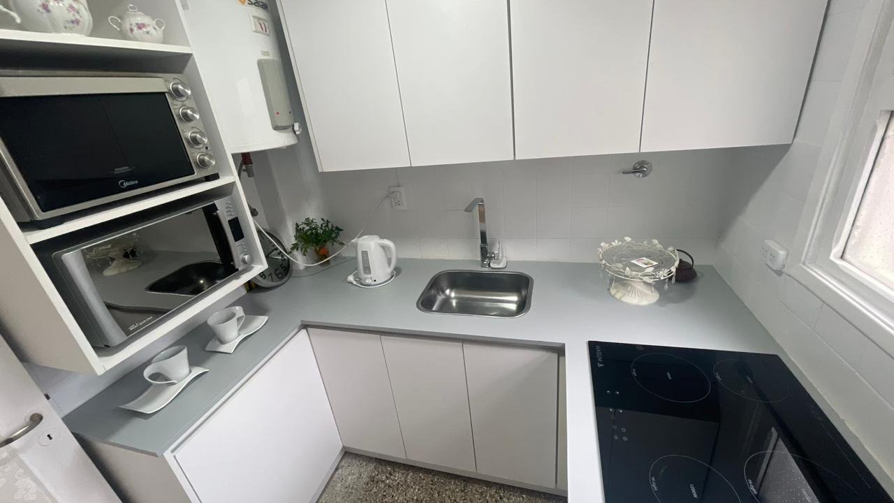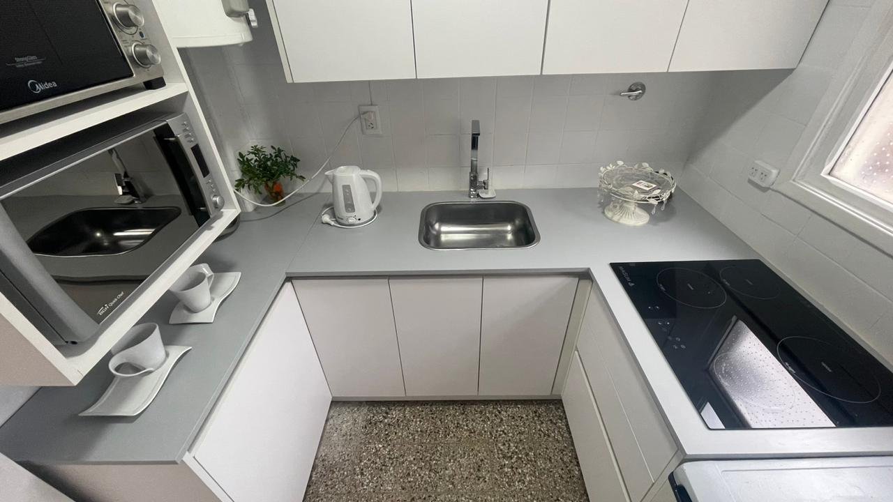 Amplia cocina separada reciclada con ventilación natural y muebles a medida
