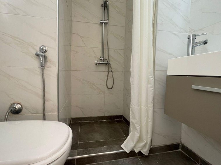 Baño revestido en cerámicos con pediluvio.