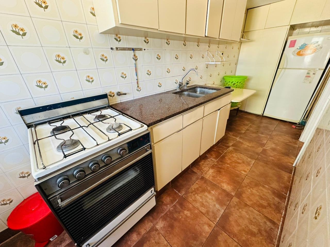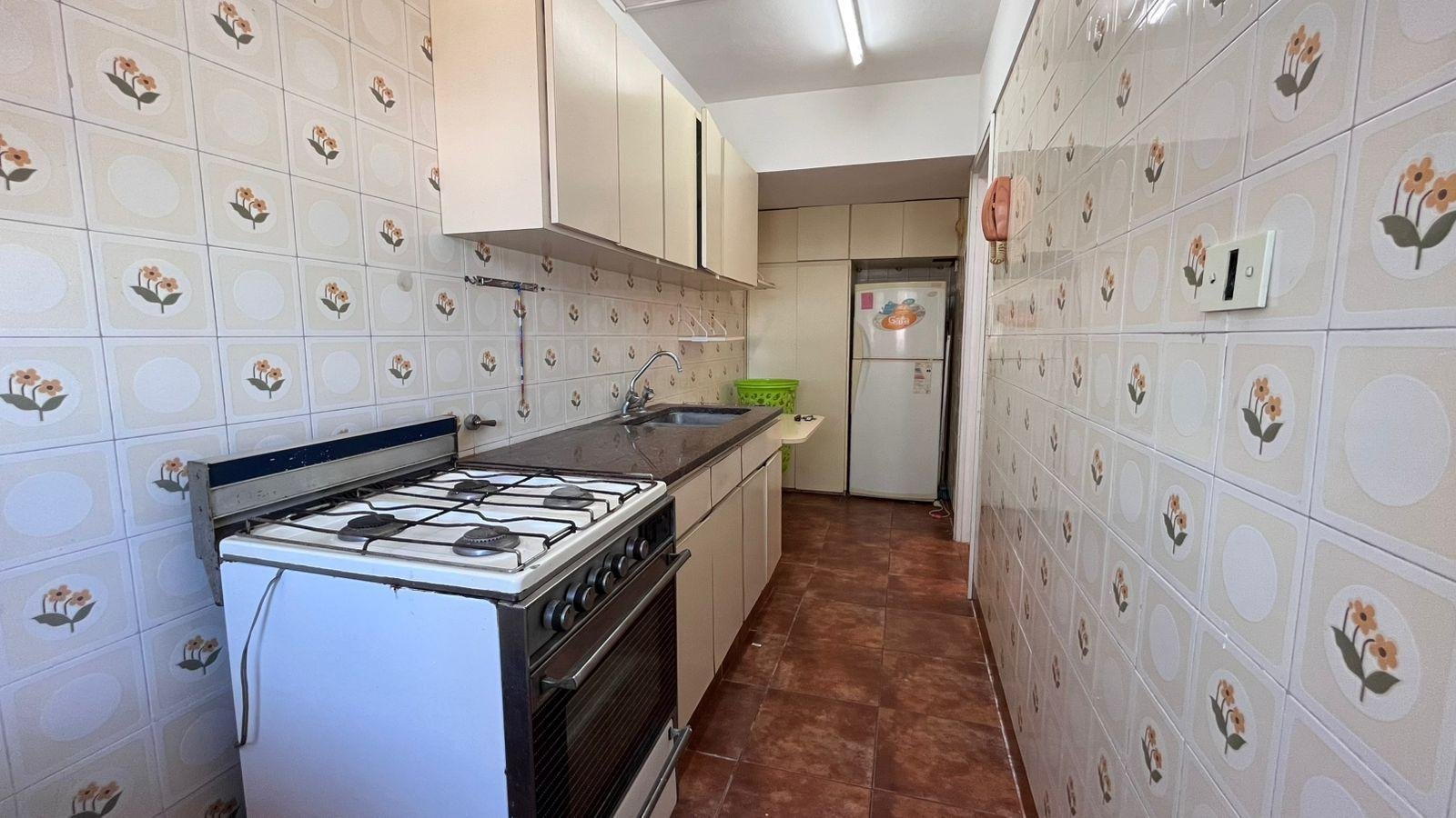 Cocina separada con electrodomésticos, muebles a medida y ventanal de aire.