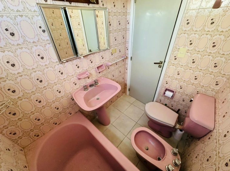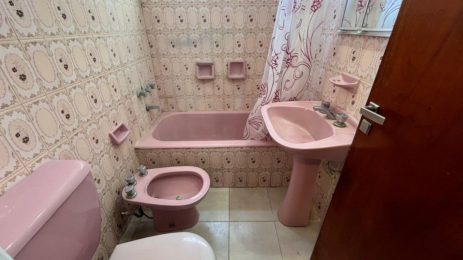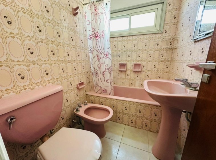Baño completo revestido en azulejos y salida de aire.