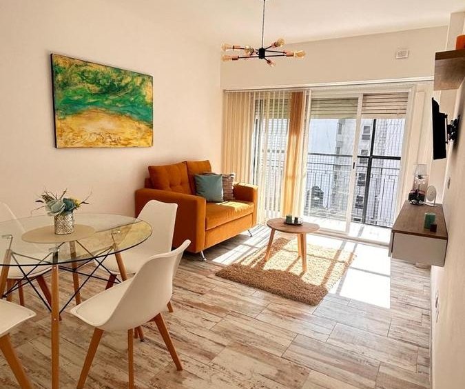 Living comedor con pisos flotante, balcón saliente a la calle y aberturas en DVH