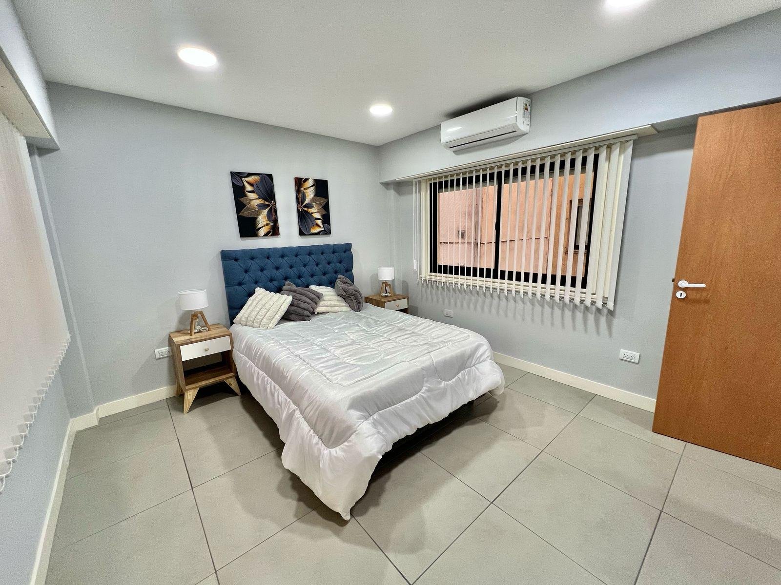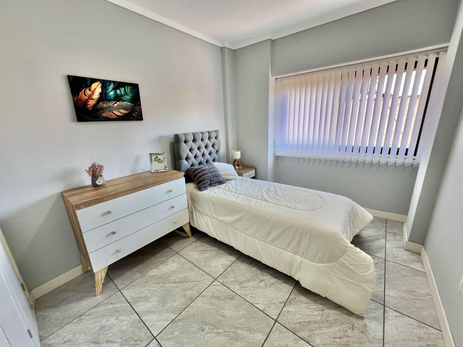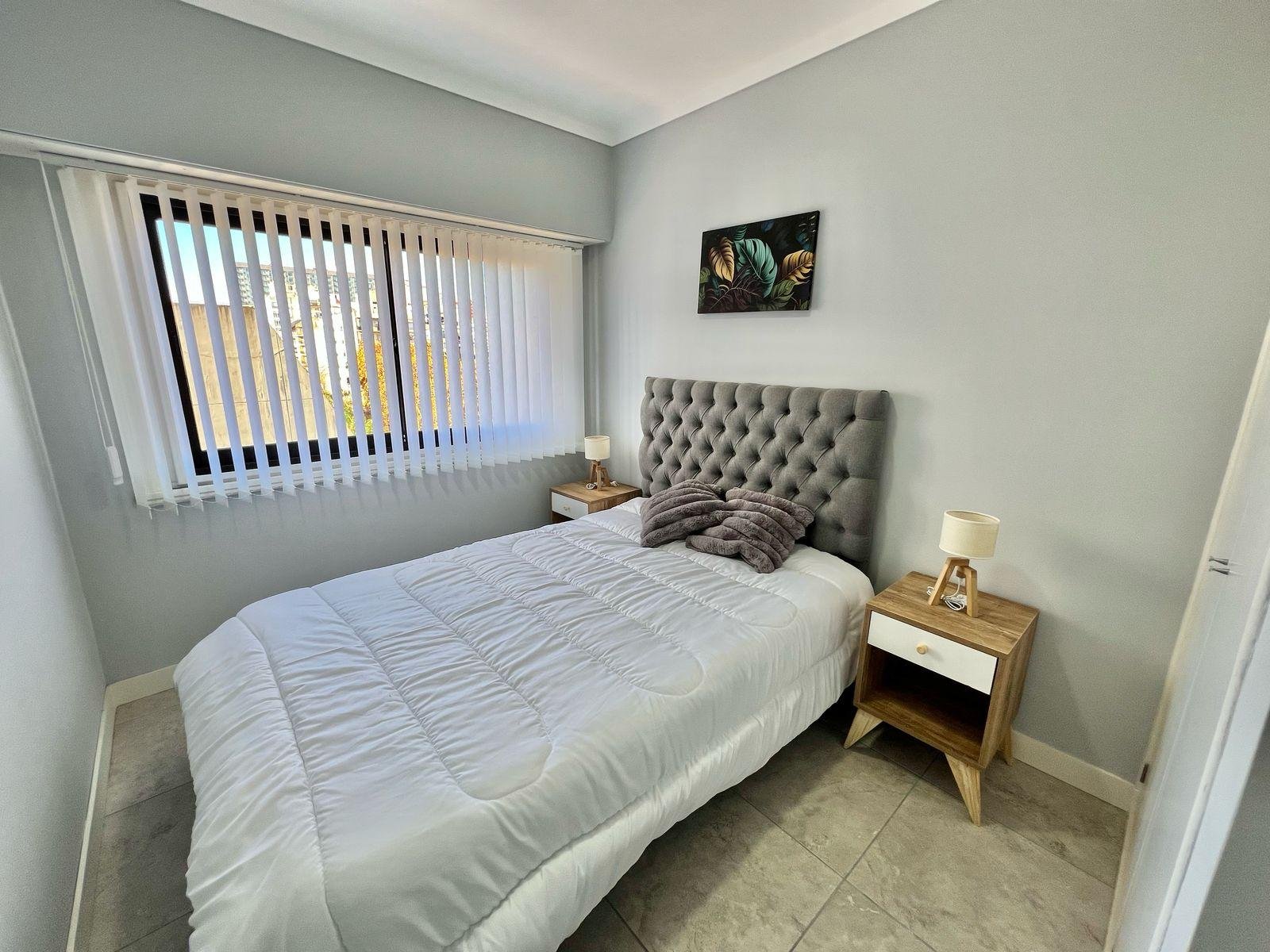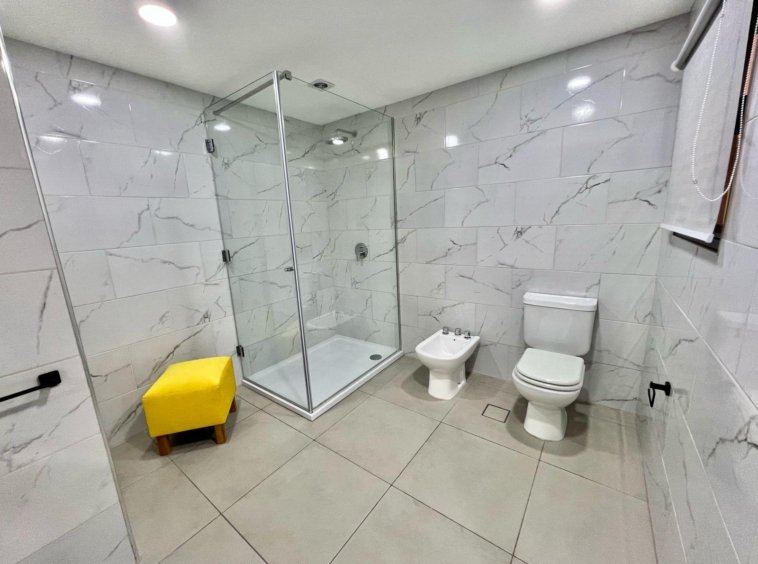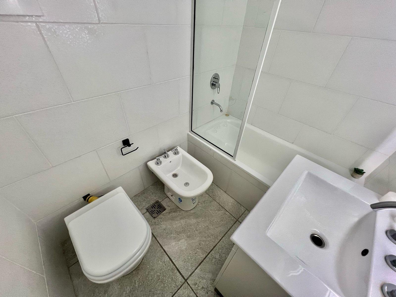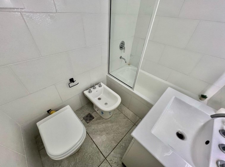 Dormitorio principal a la calle en suite, con pisos ceramicos y placard. Baño amplio completo con ducha revestido en ceramicos.